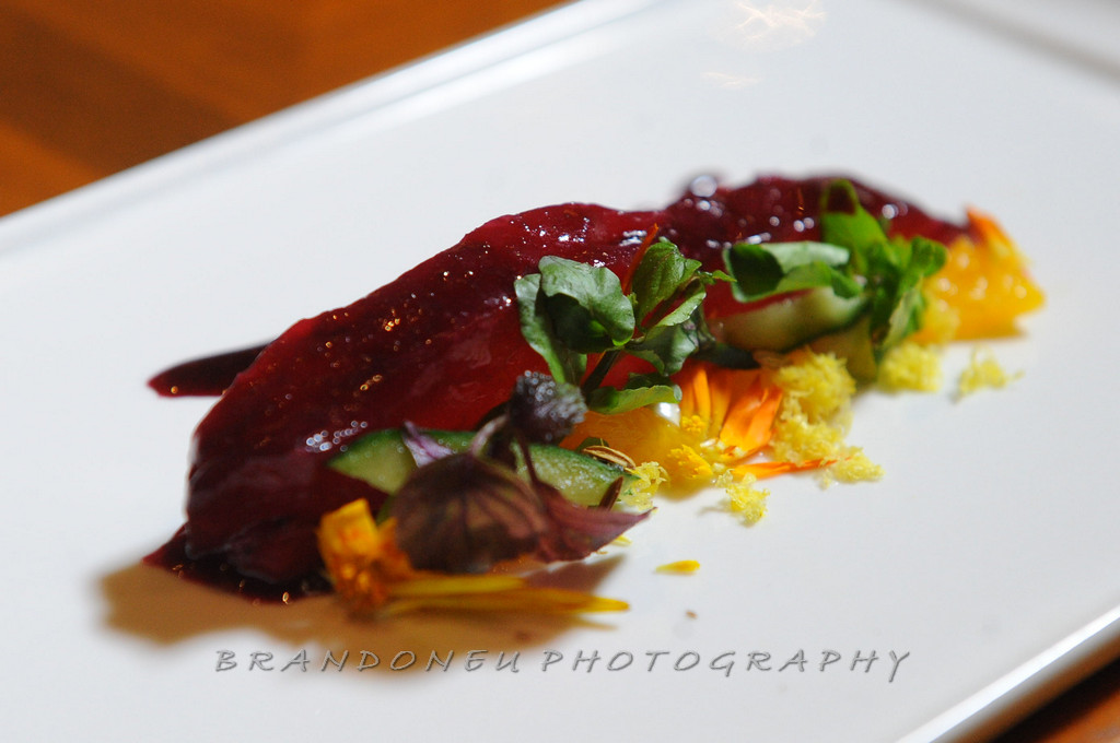 A refreshing take on salmon, and it tastes slightly sweet too. It's reddish tint contrasts well with the herbs, and leaves your palate refreshed once you're done with it.